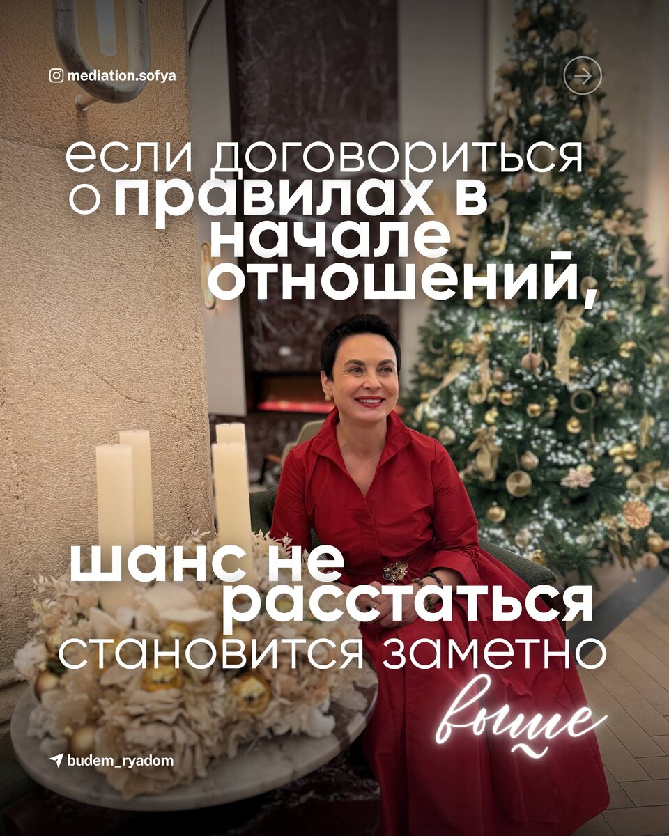 ? Советы от медиатора. Нас хорошо научили защищаться. Говорить: «Со мной так нельзя, а вот так можно», отстаивать границы и стоять на своем, не уступая. А вот договариваться нас учили куда меньше. Не объясняли, как в моменте остановиться, чтобы успокоить эмоции и выбрать не защиту, а контакт. Сказать: «Давай попробуем понять друг друга, прежде чем каждый начнет строить свою стену». ❗️Границы правда нужны. Они дают опору и ясность, где начинается «я», заканчивается другой человек, и наоборот. Но если выстраивать их без диалога и без интереса к партнеру, границы легко превращаются в дистанцию. А вместе с ней может исчезнуть то, ради чего все начиналось – близость, тепло, ощущение «нас». Важно не только уметь говорить «нет», но и понимать, как это «нет» живет внутри отношений. Поддерживает ли оно пару или постепенно отдаляет? 📨В подготовленных карточках мы собрали правила, которые стоит обсудить в начале отношений, если вы хотите сохранить контакт и увеличить шанс не расстаться. Ли