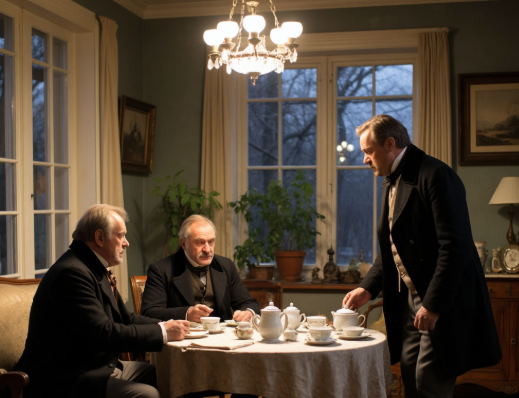 За вечерним чаем напряжение между Павлом Петровичем и Базаровым достигло предела. Павел Петрович вошёл в гостиную с холодным, но решительным видом. Он давно искал повод для спора, и, уловив момент, обратился к Базарову с вопросом о том, что тот понимает под личностью. — Личность — пустое слово, — ответил Базаров сухо. — Есть только человек как часть природы и её законов, а всё остальное — романтические выдумки. Павел Петрович вспыхнул: