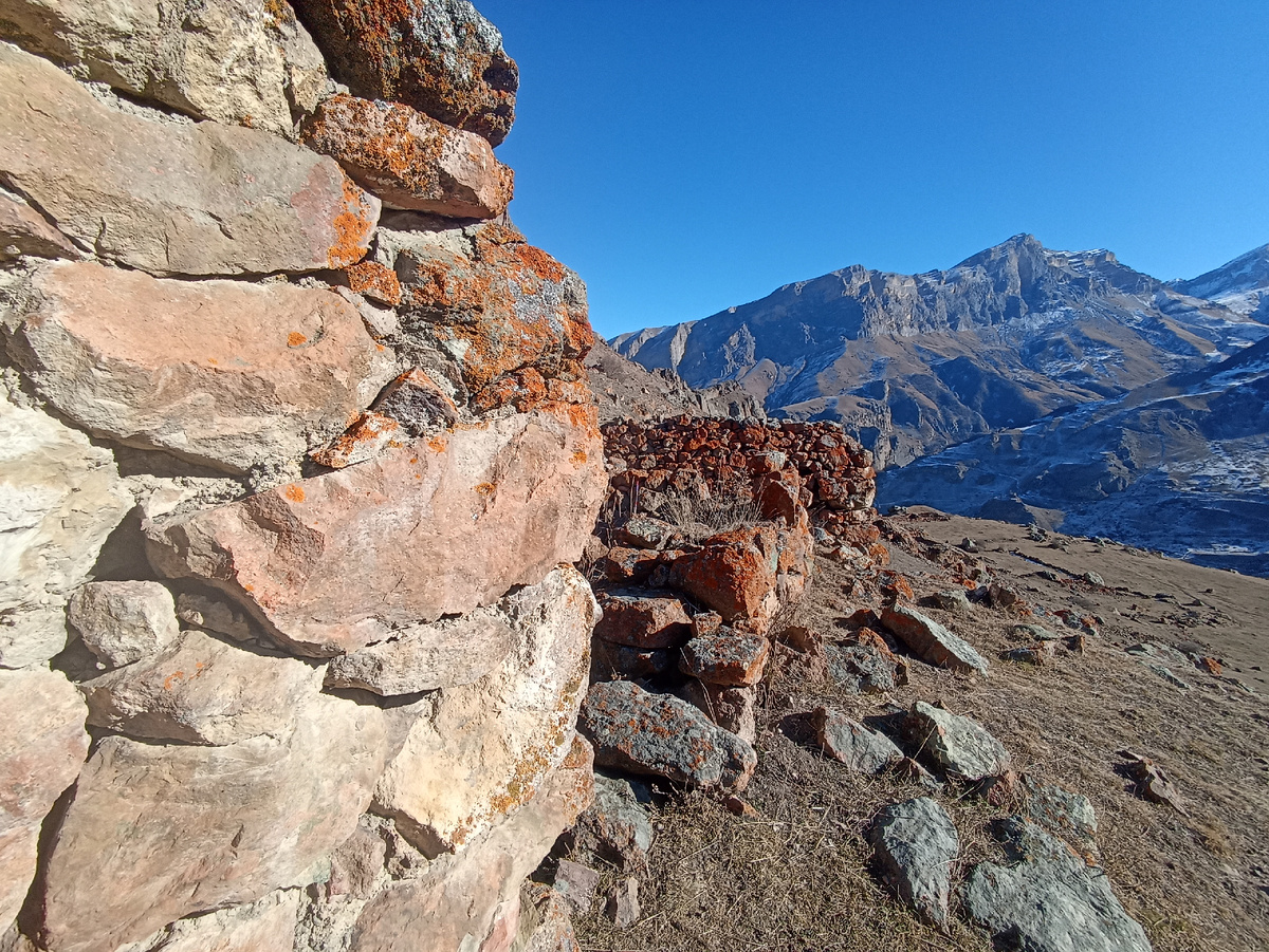 Стены толщиной в метр, крошечные окна-бойницы, рассчитанные на оборону, и плоские крыши, служившие двором для домов, стоящих выше по склону. Их строили на совесть, на десять поколений вперёд, не подозревая, что однажды сюда придёт не враг, а тишина. Стоя на скале Деуле-гажыу-тиш, видеть масштабы селения, оно огромное.
