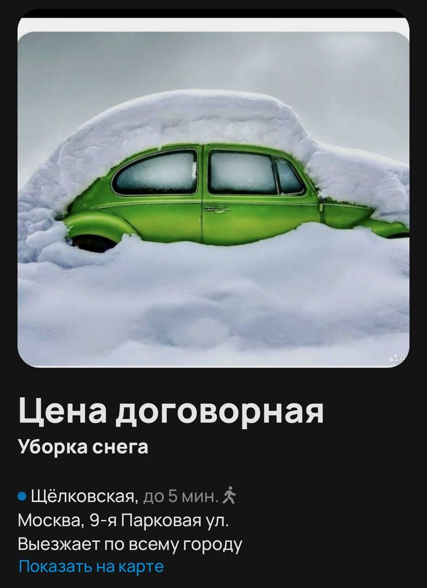 На досках объявлений новый тренд — платная очистка машины и территории от снега.