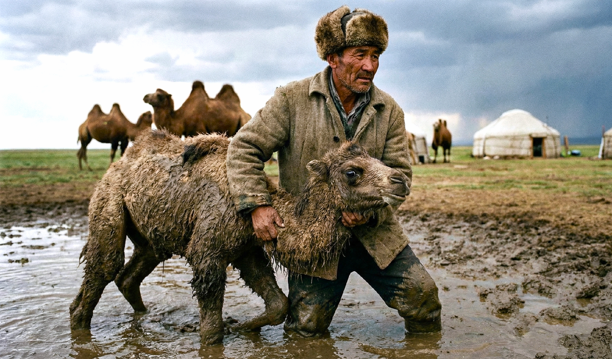 Верблюжонок затих под его рукой, словно почувствовав исходящее от человека уверенное тепло и спокойствие. Ержан быстро, профессионально осмотрел его. Переломов не было, крови тоже. Но животное было крайне истощено и, что хуже всего, обезвожено. Шкура висела на ребрах, как старая тряпка, нос был сухим, растрескавшимся и горячим. Без воды и помощи он не прожил бы и до вечера — шакалы уже наверняка чуяли легкую добычу.
