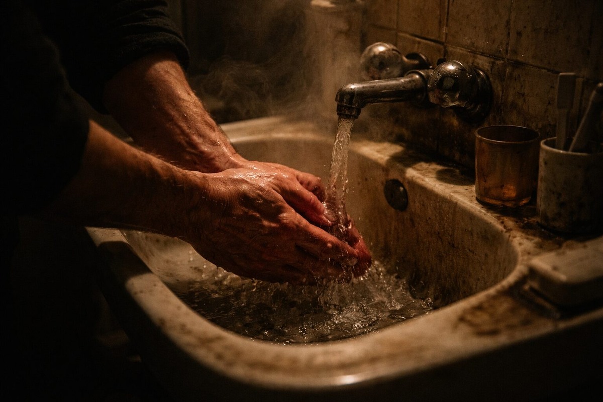 В ванной он включил воду на полную мощь. Струя ударила в эмалированную раковину с шумом, заглушающим мысли. Виктор схватил кусок грубого хозяйственного мыла. Он намыливал руки, тер их друг о друга яростно, до красноты. Смывал мазут, дорожную пыль и воспоминания. Пена давно уже была белой, но ему все казалось, что она розовеет.