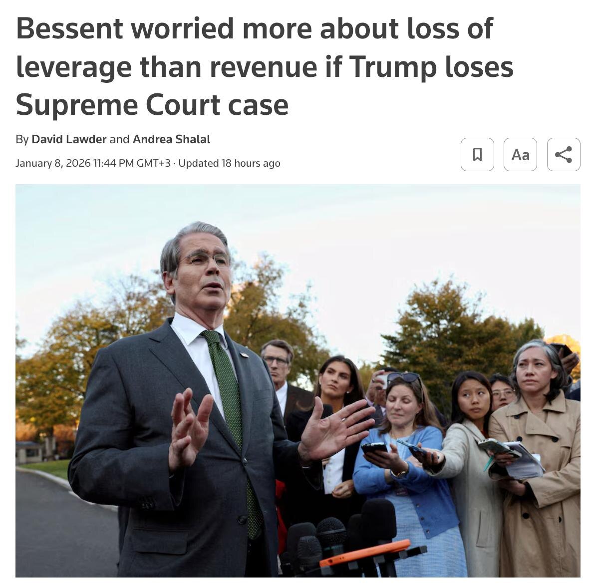 Министр финансов США: Даже если Дональд Трамп проиграет дело в Верховном суде, бюджет почти ничего не потеряет. ➤ Потерянные тарифные доходы можно восстановить через другие законы. ➤ Главный риск не деньги, а потеря гибкости и переговорного давления. ➤ Тарифы по IEEPA были мощным рычагом против Китая, Мексики и Канады. ➤ Именно угрозы 100% пошлин заставляли партнеров быстро идти на диалог. Crypto Headlines