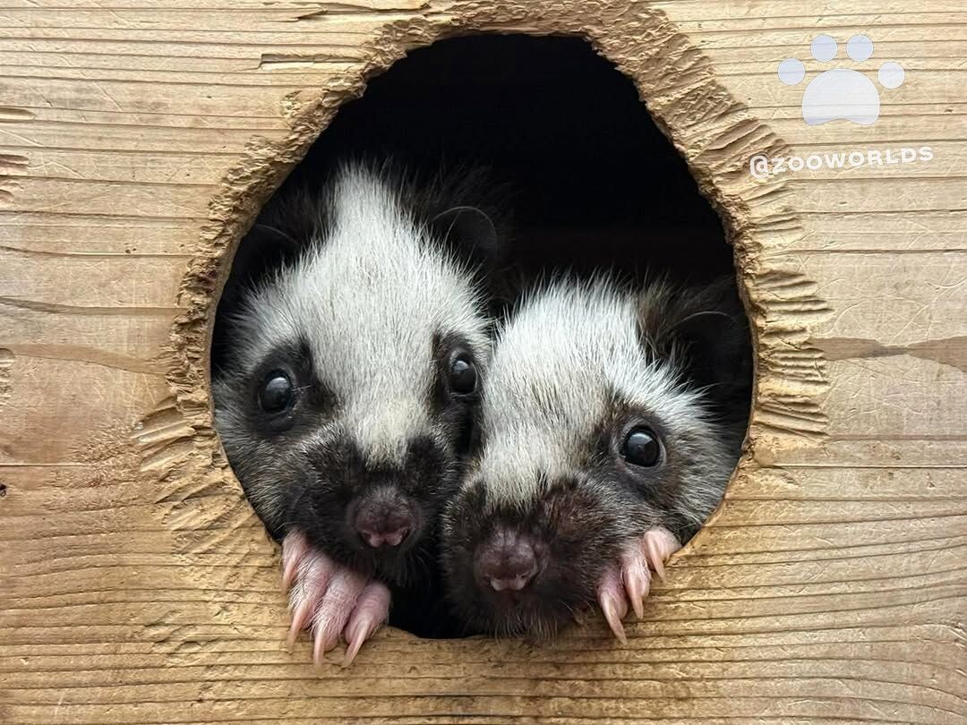 Два грызуна неожиданно выглянули из гнездовой коробки.