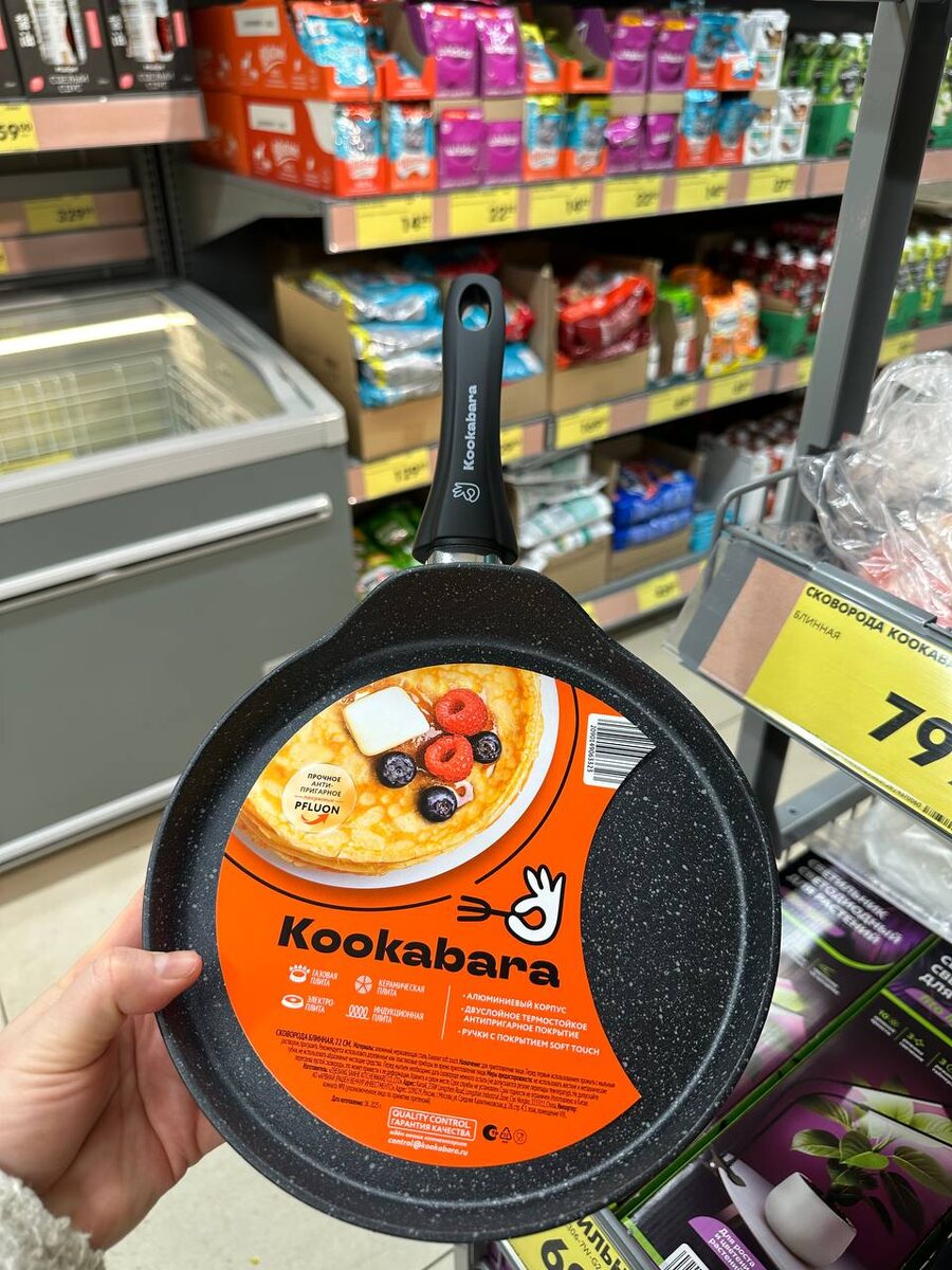 Блинная сковородка - отличного качества ( у меня такая прослужила два года, я готовила на ней, завтраки и использовала почти каждый день) цена 799₽