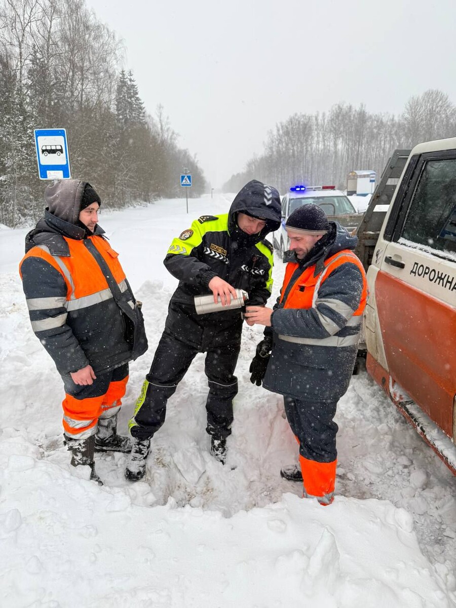 И пока природа бушует, на дорогах района дежурят 3 экипажа ОГАИ Несвижского РОВД, обеспечивая безопасность и помогая всем, кто оказался в беде. Инспекторы патрулируют самые сложные участки, оказывают помощь водителям, попавшим в снежные ловушки, а также координируют работу по оперативной расчистке дорог. 🙏 И сегодня на 102 поступил звонок с искренней благодарностью. Водитель, которому инспекторы помогли выбраться из снежной западни, согрели пледом и угостили горячим чаем, не остался в стороне и выразил свою признательность! Доброта и взаимопомощь не знают непогоды! Уважаемые водители! Погодные условия остаются сложными. Соблюдайте дистанцию, снижайте скорость, избегайте резких маневров и будьте внимательны к другим участникам движения. Берегите себя!