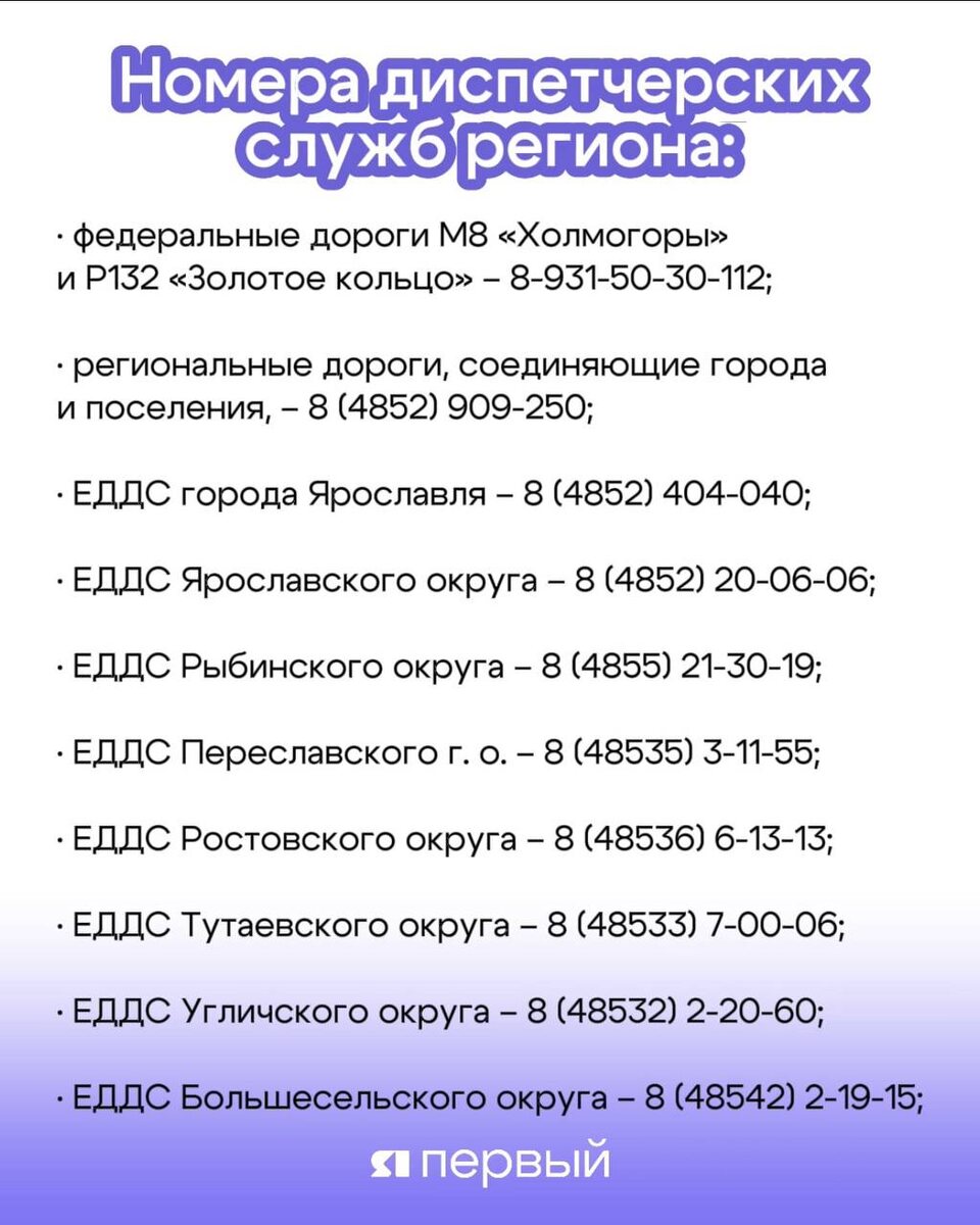 📞 Куда звонить при возникновении непредвиденных ситуациях на дорогах? Сейчас коммунальные службы работают в усиленном режиме. Специалисты трудятся во всех округах нашей области и устраняют последствия метели на региональных и муниципальных дорогах. К сожалению, одновременно убрать все сугробы невозможно. Но дорожники оперативно реагируют на складывающуюся обстановку. Номера диспетчерских служб Ярославской области – в наших карточках⬆️ 💚 Подписаться на «Тelegram» | Подписаться на канал в «МАХ»