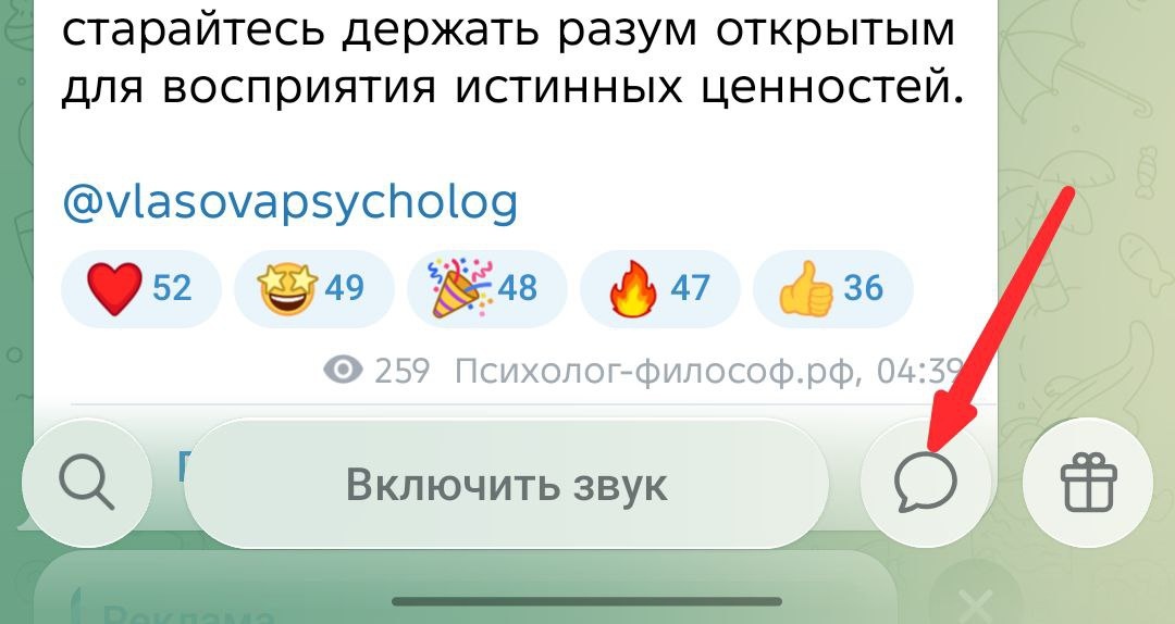 Сообщение мне можно написать прямо из канала. Конфиденциально ❤️