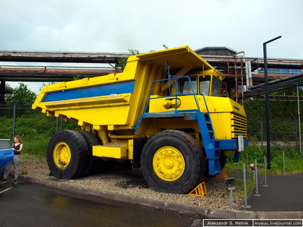 Дата съёмки - 13.06.2025. Мы посещали этот музей в рамках промышленного тура на металлургическое производство. Организованная экскурсия проходит по самому музею, потом нас на автобусе доставили к домне Северянка, после осмотра которой мы переместились к прокатному стану Стан-2000. Видео разливки чугуна и проката слябов, которое мы сделали во время экскурсии: Вернёмся к уличной экспозиции. Здесь нас встречает большой чёрный вагон необычной формы. Это Коксовозный вагон - основное технологическое оборудование для приёма кокса из печи коксовой батареи с последующей транспортировкой и разгрузкой в установку тушения. За вагоном видна спекательная тележка (палетта), фото которой нет. Кокс – это материал на основе особым образом обработанных определённых сортов каменного угля, который используется в качестве топлива при плавке чугуна. Для получения кокса из каменного угля в коксовой батарее прово