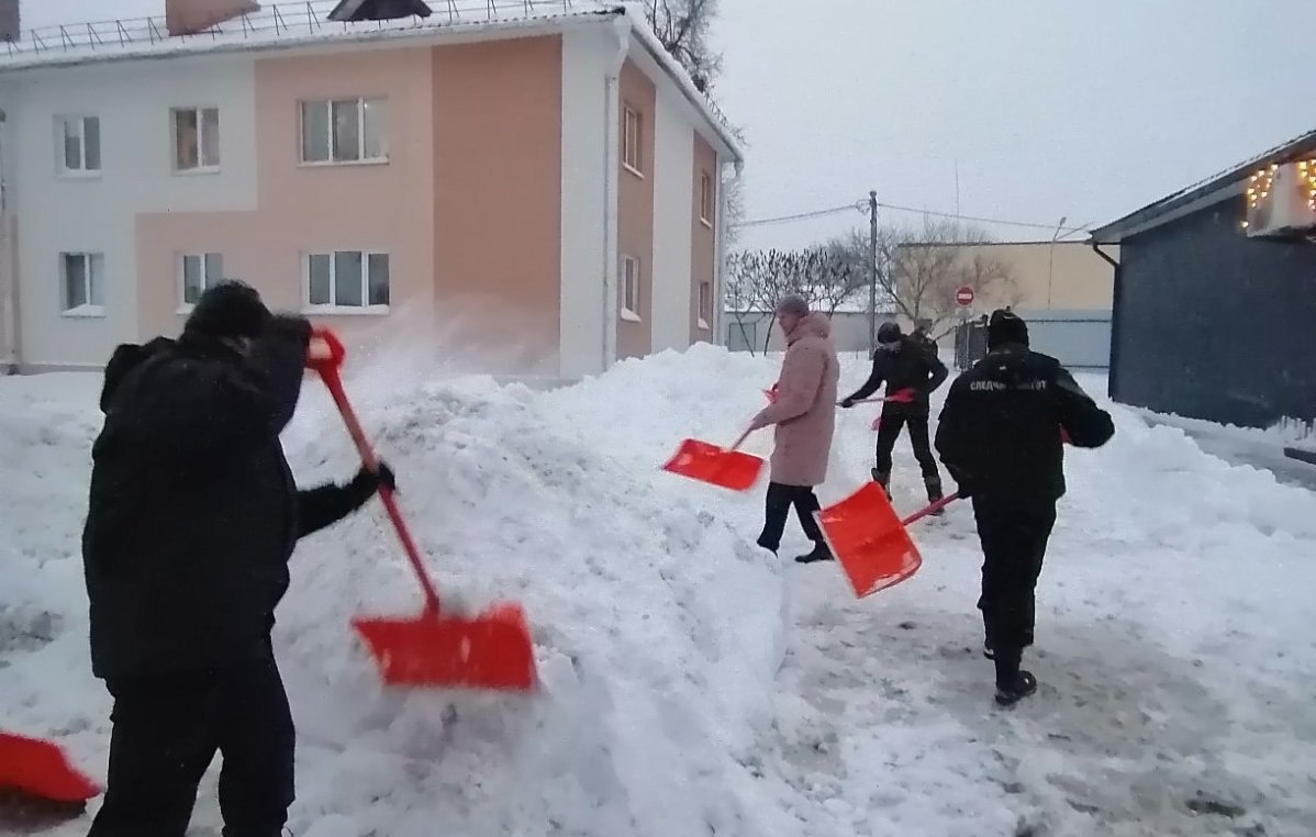 На призыв коммунальников о помощи в уборке от снега Лунинца после мощного снегопада откликнулись и сотрудники Лунинецкого районного отдела