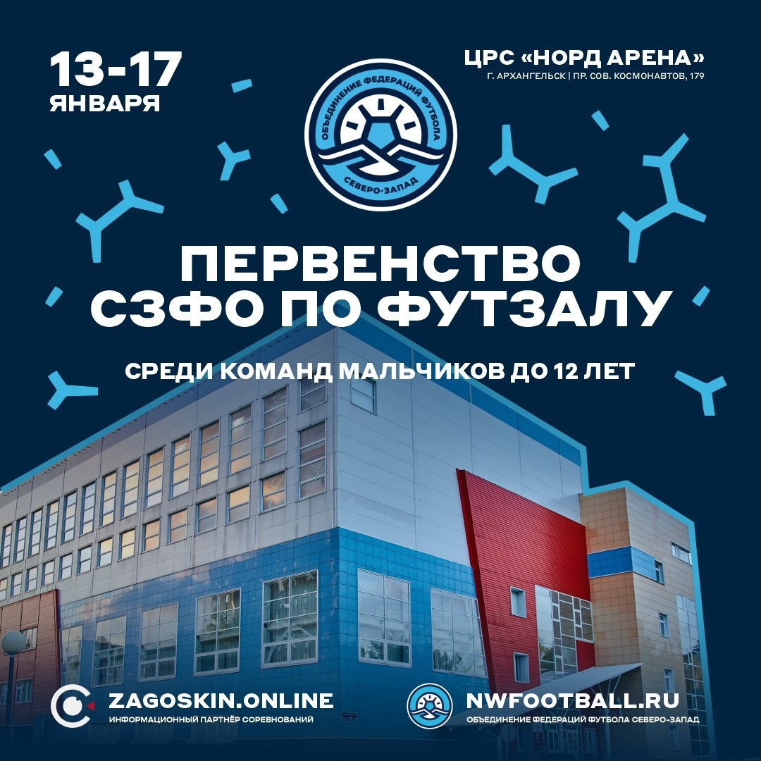 ⚽ Уже на следующей неделе 13 января в Архангельске на паркете ЦРС «Норд Арена» стартует первенство СЗФО по футзалу среди мальчиков до 12