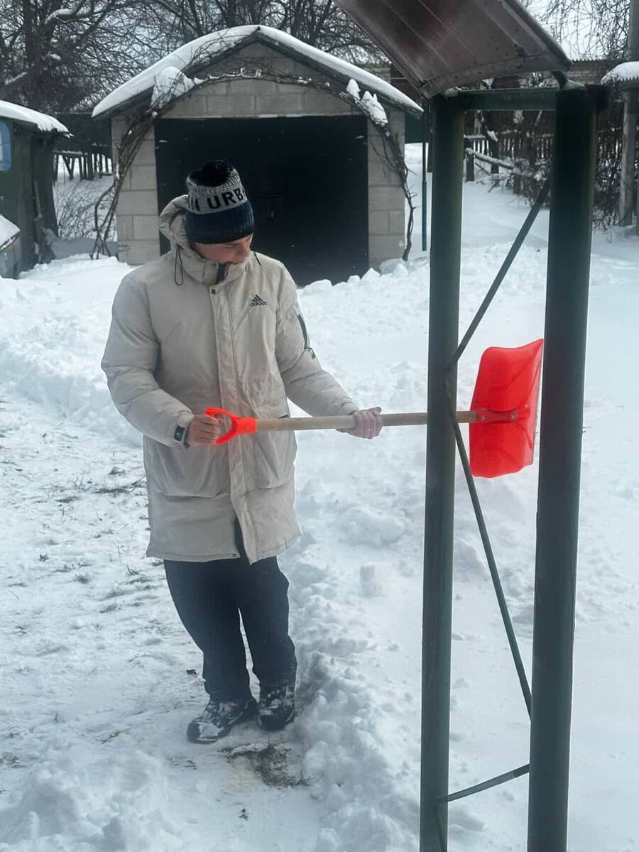 📌Наша подписчица делится кадрами, как внуки помогают расчистить снег во дворе по ул.Гайдаенко.