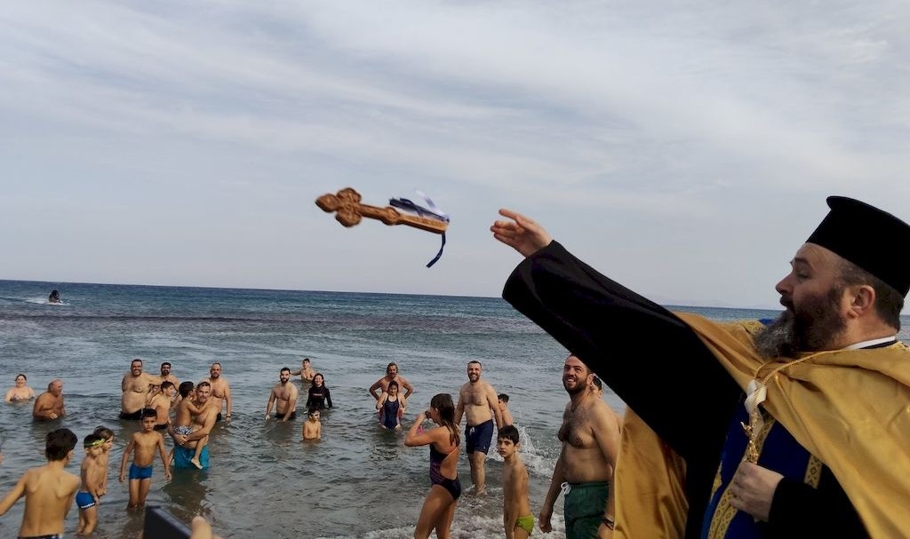 Καλά Φώτα! (Доброго света) – желают друг другу греки в праздничные дни Феофании (Θεοφάνεια, Богоявление). «Три дня света», или Фо́та, напоминают о событиях крещения Христа в реке Иордан. 5 января – вечерняя литургия в храмах, 6-е – освящение вод, 7-е – день памяти Иоанна Крестителя, завершающий цикл рождественских праздников. Христиане верят: в эти дни свет Божественный омывает землю, воды и души людей. Впитывай его, живи с ним и делись с теми, кто «потемнее». А чтобы побольше «впиталось», прыгай в холоднющее море после молитвы и Великого освящения вод – за крестом! И за благословением на целый год… Даже шторм, бывало, не останавливал критян, готовых добыть крест, брошенный в воду батюшкой. Что уж говорить о критском солнце и плюс 17 градусах (на суше и в море)! В бодрящую водичку без страха окуналась даже детвора. Тот, кто первым коснется креста (и поднимет его над головой), весь год будет под особым благословением Божиим, считают греки. На острове Крит под музыку оркестра процессии