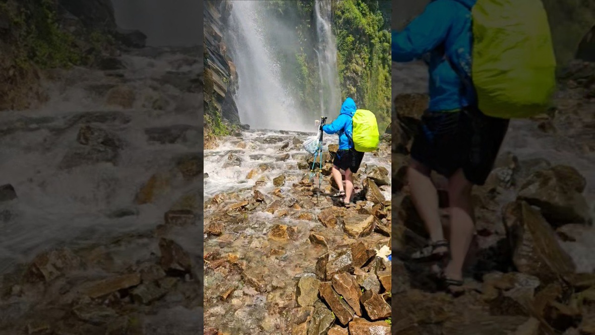 Мегаводопад сбивающий с ног потоком ветра от летящей воды. Манаслу трек. Будхи Гандаки. Непал — Мозаика Прошлого