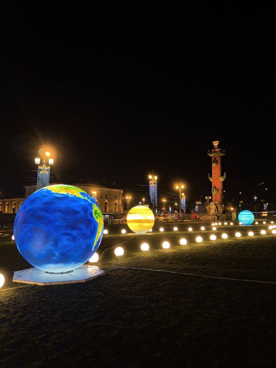 На Стрелке Васильевского острова появилась новая инсталляция. Композиция «Парад планет», представляющая собой подсвеченные макеты небесных тел, и мультимедийная елка создают особую праздничную атмосферу. Теперь попасть в космос можно на фоне Невы, Ростральных колонн и панорамы города. Идеальное место, чтобы сделать необычные фотографии. 📍 Стрелка Васильевского острова #локация Подпишись на Вокруг Питера 🇷🇺 Мы в MAX