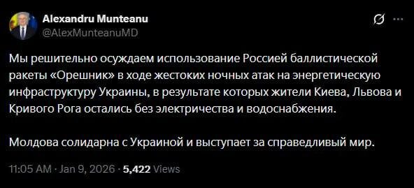 Мы решительно осуждаем использование Россией баллистической ракеты «Орешник», — Премьер Молдовы Мунтяну.