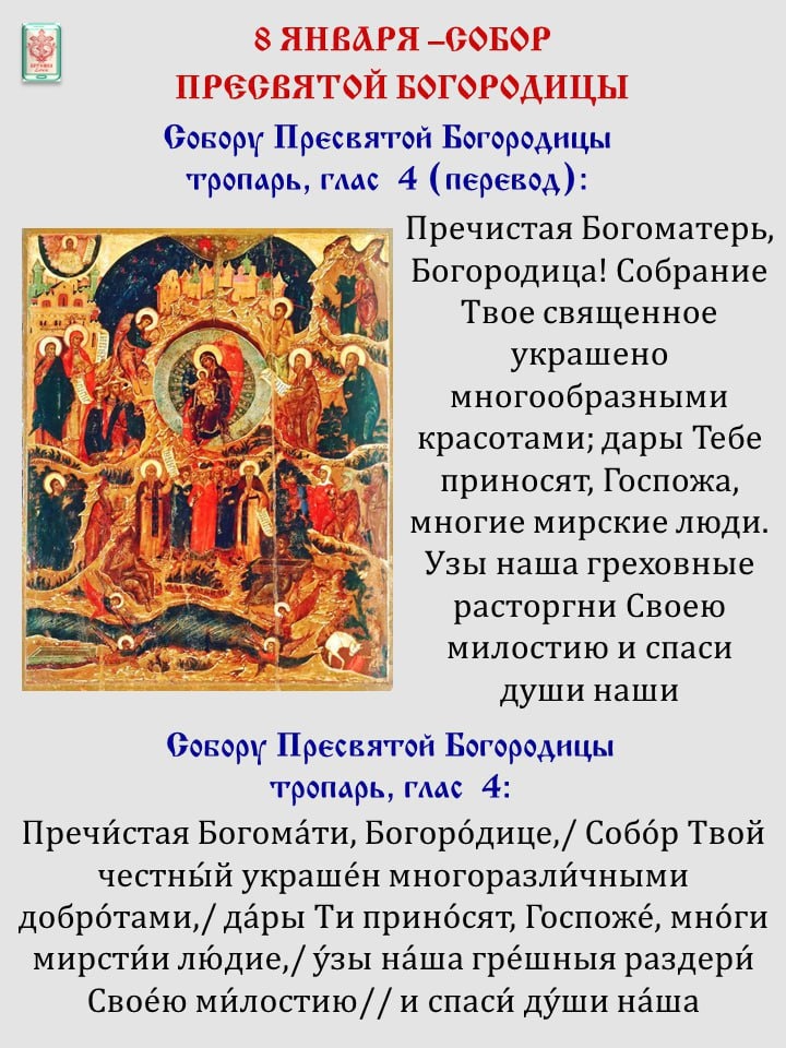 Собор Пресвятой Богородицы празднуется на следующий день после Рождества Христова