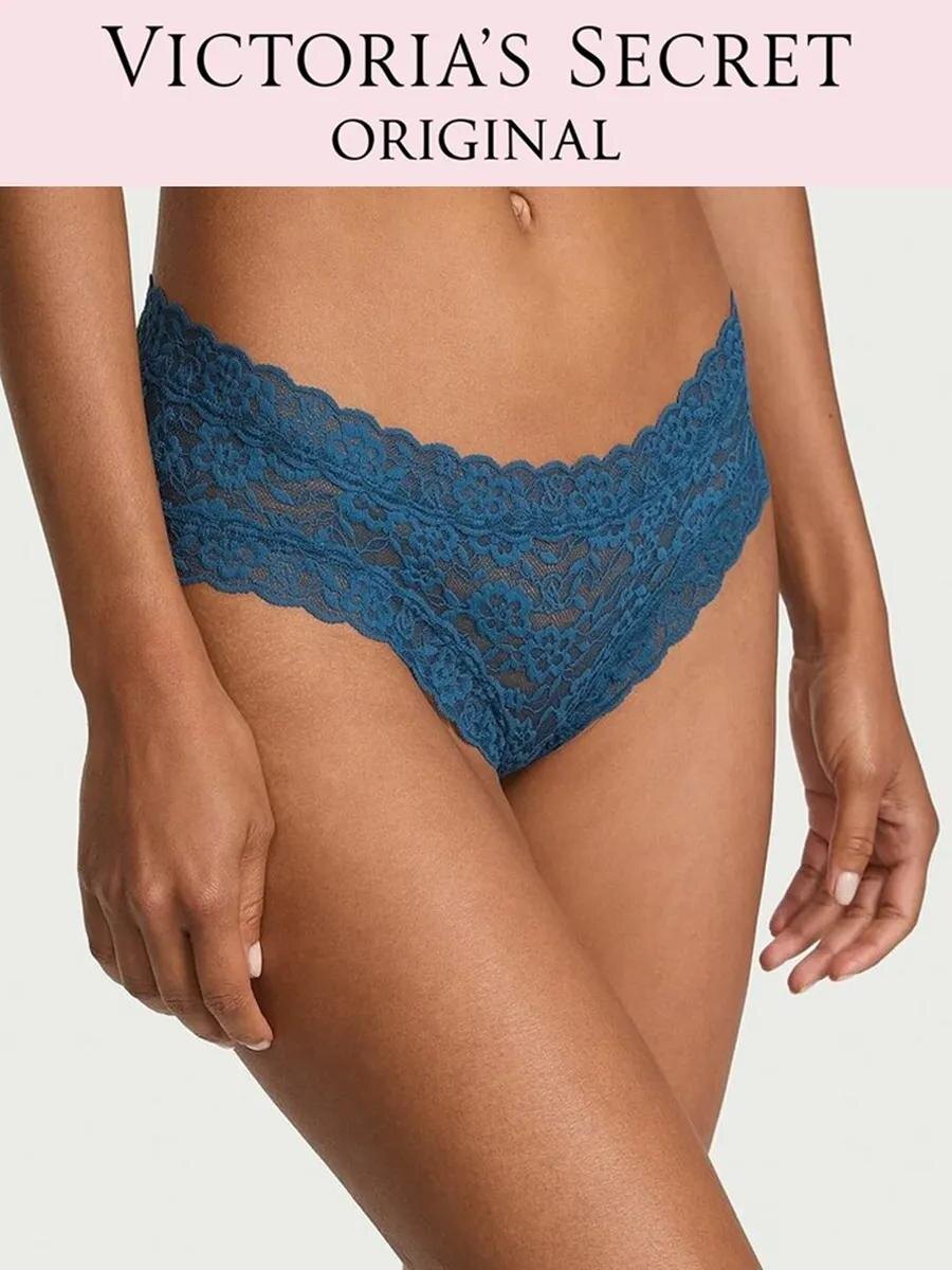Трусы Victorias Secret M синие кружевные Lace Cheeky Panty