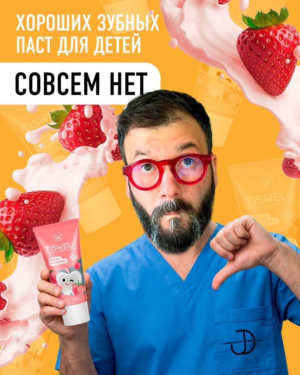 так думал я, когда сел делать для вас предыдущую подборку — настолько сомнительными оказались составы большинства средств. Поэтому решил по возможности уделить чуть больше внимания зубным пастам для детей и изучить составы еще нескольких брендов (в надежде обнаружить еще что-то достойное) TISWELL — детская зубная паста для комплексного ухода без фтора со вкусом клубники со сливками. Производитель обещает защиту от кариеса и укрепление эмали и рекомендует свой продукт детям от года. Давайте смотреть состав: Sorbitol — удерживает влагу, защищает от кариеса за счет повышения слюноотделения Aqua — вода Silica — мягкий прогрессивный абразив, обладает хорошими очищающими свойствами Xylitol — подсластитель, снижающий бактериальную активность, тем самым защищая эмаль PEG-32 — водорастворимый полимер, имеющий низкую степень токсичности, однако существует мнение, что PEG-соединения могут негативно влиять на эндокринную и репродуктивную системы, вызывать раздражение слизистой оболочки полости рта