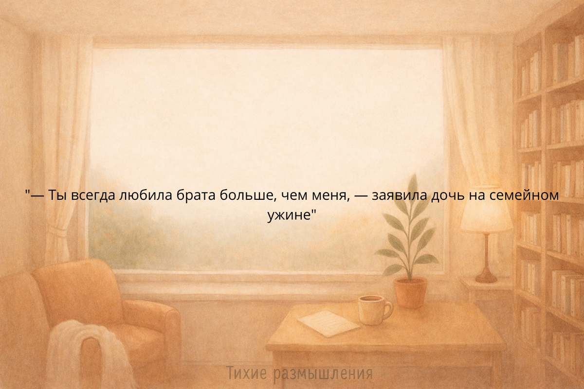 Наталья Сергеевна смотрела на дочь, и в голове у неё был хаос. Она хотела возразить, объяснить, что это не так, что она любит обоих детей одинаково, но слова застревали в горле.