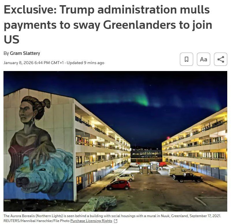 Администрация Трампа рассматривает возможность выплаты гренландцам от 10 000 до 100 000 долларов США на человека за то, чтобы они