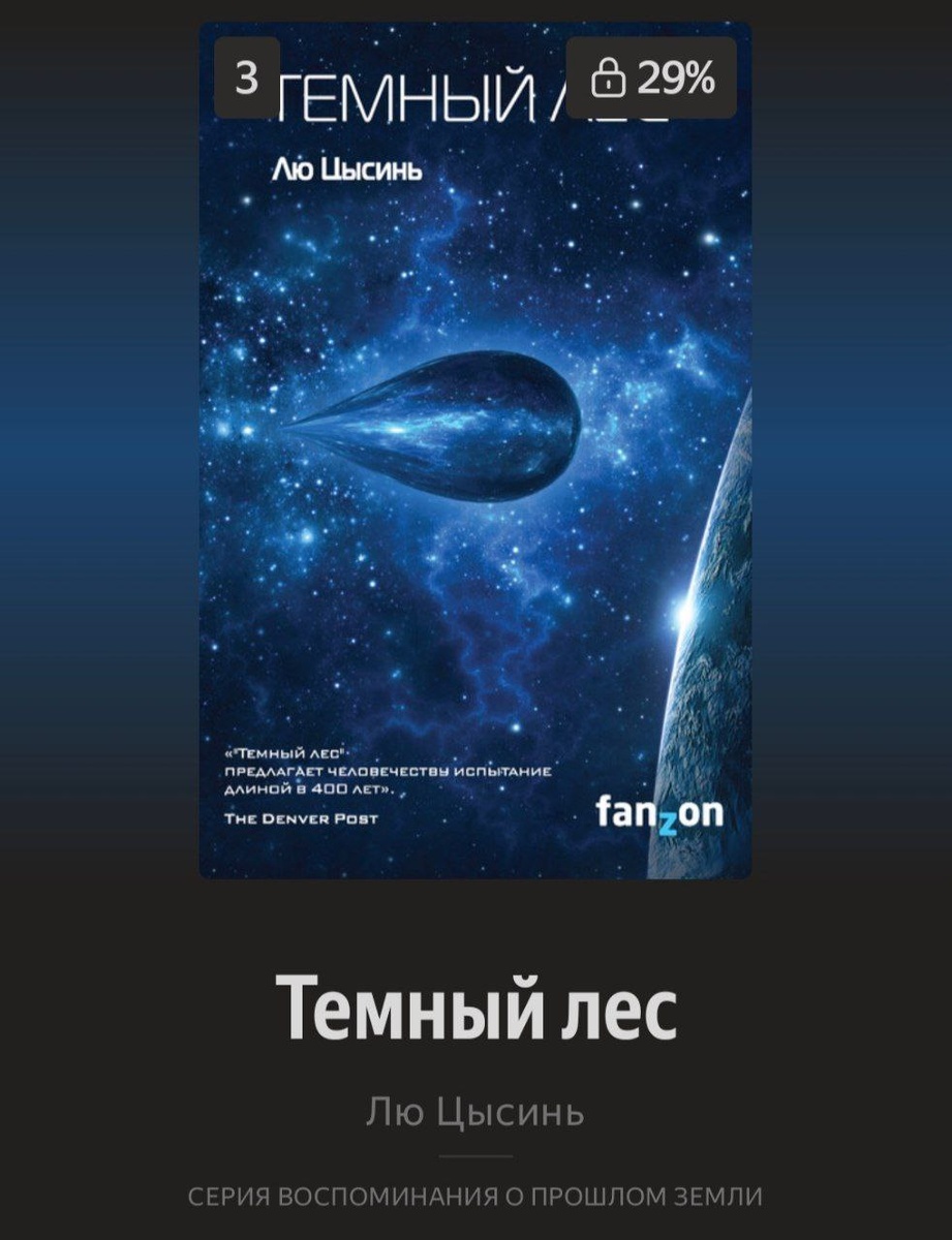 Кажется уже третий раз возвращаюсь к тёмному лесу. Читал до какой-то главы, прерывался и возвращался вновь. Но вот на этой неделе решил всё таки вернуться и начать в формате текстового чтения и аудио. Хорошо, что эти два формата отлично реализованны в Яндекс книгах.