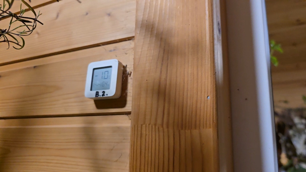 Проснулась в седьмом часу утра от шума ветра за окном. Увидела в приложении, что в совешне, в вольере сыча Лучика, температура опустилась ниже нуля градусов.