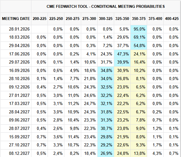 Вышли свежие данные по рынку труда США. Non-Farm Payrolls составили 50 тыс. при прогнозе 60 тыс., при этом предыдущие данные были пересмотрены вниз: с 64 тыс. за ноябрь до 56 тыс. Уровень безработицы также пересмотрен с 4,6% до 4,5%, текущая цифра — 4,4%, что чуть ниже ожиданий. Формально данные выглядят неплохо, но по факту мы видим устойчивый тренд замедления рынка труда, особенно в сравнении с предыдущими годами. Это замедление напрямую противоречит текущему рыночному нарративу о том, что ФРС якобы не будет снижать ставку. Январская пауза была очевидна изначально — в январе ФРС традиционно берёт паузу, и вероятность этого сейчас просто выросла почти до 95%. Однако ожидания рынка о том, что в марте ставку не снизят, выглядят некорректно. На мой взгляд, снижение начнётся именно с марта. Ситуация усугубляется политическим фактором. Ожидается назначение нового главы ФРС, и с учётом линии Трампа можно ожидать максимально мягкую риторику и агрессивное смягчение политики. Трамп заинтересо