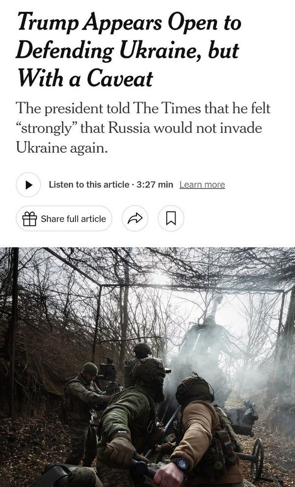 Он уверен, что Путин после заключения мирного договора не собирается вновь вторгаться на то, что останется от Украины. «Я твердо чувствую, что они не будут вторгаться снова, иначе я бы на это не согласился. Я думаю, он хочет заключить сделку. Я так думал уже долгое время». Трамп собирается переложить на ЕС всё содержание незалежной, а сам собирается продавать им оружие: «Ее союзники, вся Европа, другие страны, которые в этом участвуют, и Соединенные Штаты». Когда закончится война он не может спрогнозировать: «Мы делаем все, что можем. У меня нет сроков», .а раньше обещал закончить эту войну за 24 часа.😜