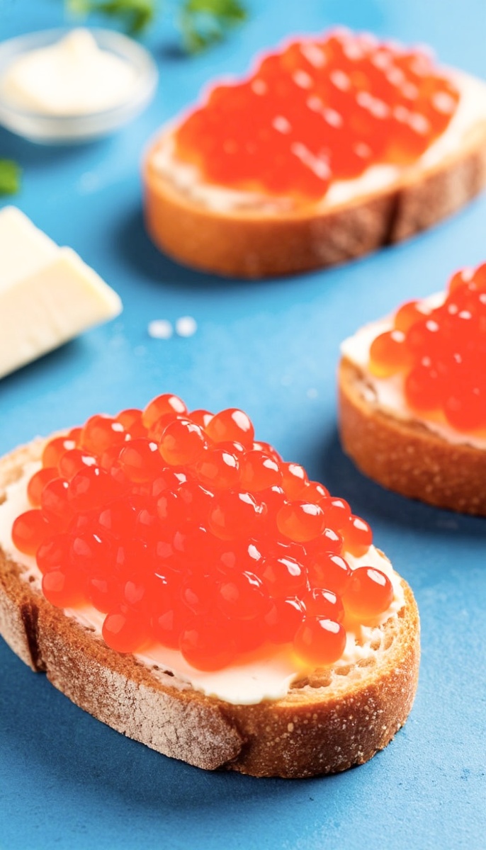 Икра на тонком ломтике хлеба с тонким слоем масла — полезный выбор для сосудов, если не превышать меру.