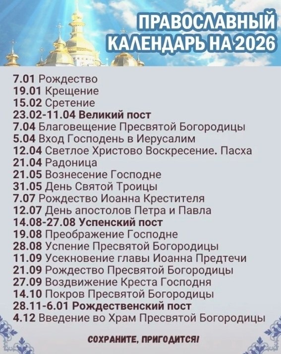 🙏Православный календарь на 2026 год! Не забудьте сохранить!