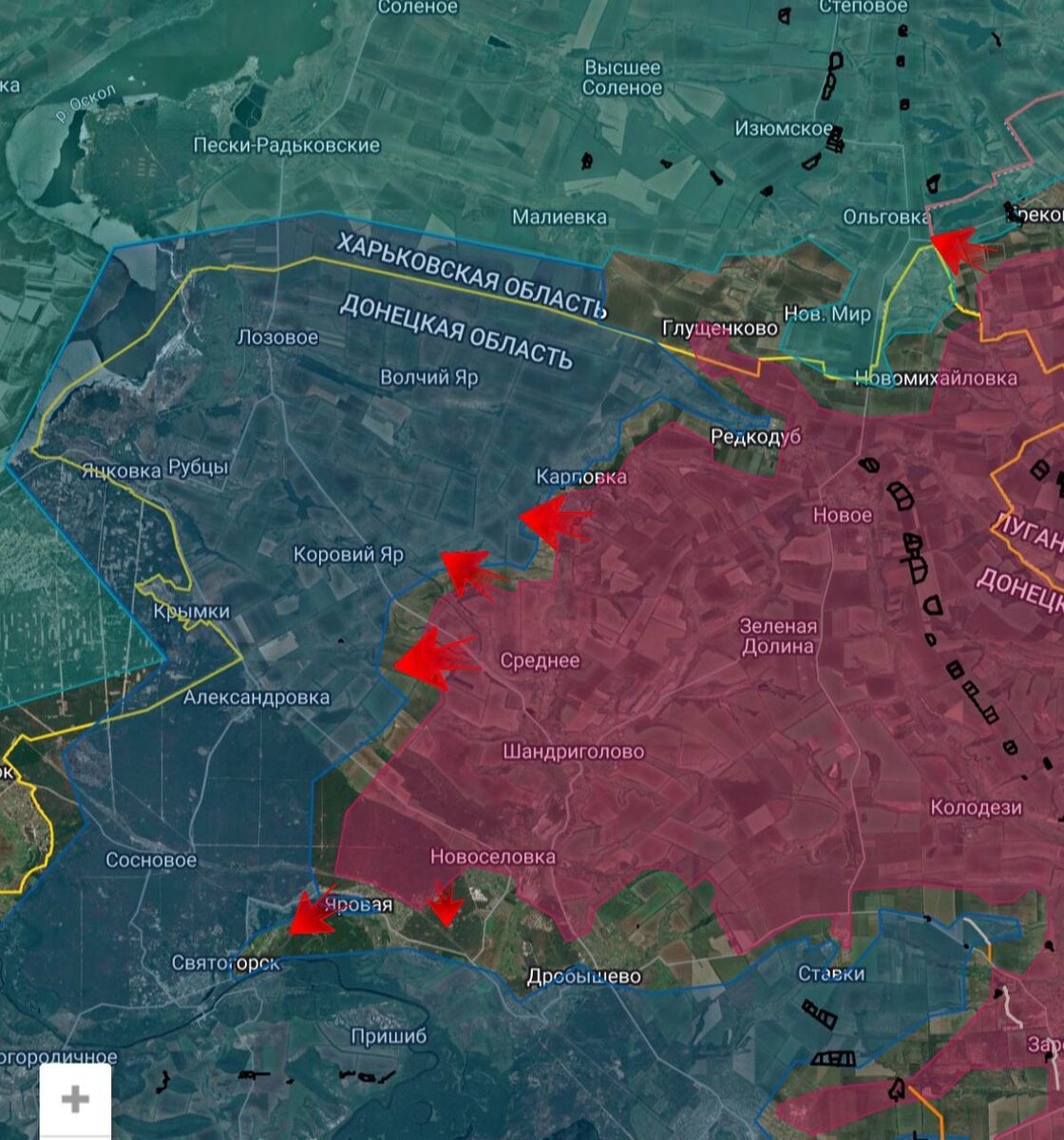 ▫️Со стороны Петровского (Грековки) наши войска продвинулись в лесопосадках в направлении Ольговки. ▫️Бойцы ВС РФ продавили оборону противника и перерезали дорогу от Коровьего Яра до Карповки, также продолжили движение с восточной стороны Коровьего Яра. В самом селе продолжается выявление и уничтожение вражеских резервов. Чуть южнее наши войска взяли несколько опорников и контроль над дорогой Александровка-Коровий Яр. ▫️Юго-западнее Новоселовки жд станция с одноименным названием перешла под контроль нашей армии, продолжаются бои за укрепления в лесном массиве. ▫️В лесном массиве вдоль Северского Донца от Яровой наши подразделения продвинулись и вошли в Святогорск в районе пляжа Тайм-аут. ▫️ Дневник Десантника 📲 Дневник Десантника в МАХ