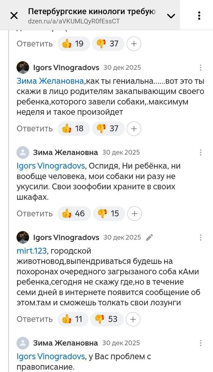 🟥30 декабря живодеры анонсировали, что в течение 7 дней в интернете появится информация о «погрызенном собаками ребенке» ⬇️⬇️⬇️⬇️⬇️⬇️⬇️⬇️ https://t.me/vserosnarodzooza/8498 🟥31 декабря в паблике Братска появляется новость о «нападении бездомных собак на девочку», которая потом оказывается фейком : ⬇️⬇️⬇️⬇️⬇️⬇️⬇️⬇️⬇️⬇️ https://t.me/vserosnarodzooza/8523 🟥И вот вчера, 5 января появляется новость о «нападении бездомных собак» теперь уже на мальчика. И снова в окрестностях Братска. И снова деревня, и снова отсутствие камер, и снова ребенок один, следит за ним какой-то опекун - антураж у якобы нападений всегда одинаковый. Мгновенно в комментарии ТГ-канала главы Братска налетает вся живодерская пехота и начинает истерию против бездомных животных, хотя никаких официальных заключений, что это именно собаки, пока нет. И все это происходит в аккурат перед очередным заседанием кружка мынежЫводеров. ❓Совпадение? Не слишком ли много совпадений? ❓Следственный комитет реально не видит в эт
