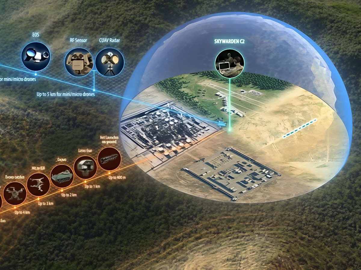 Европейский оборонный концерн MBDA развивает комплекс Sky Warden как средство противодействия беспилотникам и барражирующим боеприпасам на малых дистанциях. Система предназначена для защиты войск, объектов и инфраструктуры и применяется как автономно, так и в составе эшелонированной противовоздушной обороны. Sky Warden объединяет радары, оптико-электронные и радиочастотные датчики в единый командный контур с высокой степенью автоматизации. В зависимости от обстановки комплекс может использовать разные средства воздействия. В их числе радиоэлектронное подавление, лазерные системы, ракеты ближнего радиуса, кинетические перехватчики, а также беспилотные перехватчики. Такой набор позволяет системе гибко реагировать на широкий спектр угроз, от малых квадрокоптеров до более крупных ударных беспилотников и барражирующих боеприпасов. Sky Warden ориентирован на работу в зоне, где цели уже находятся в непосредственной близости к защищаемым объектам и требуется быстрый и экономически оправданны