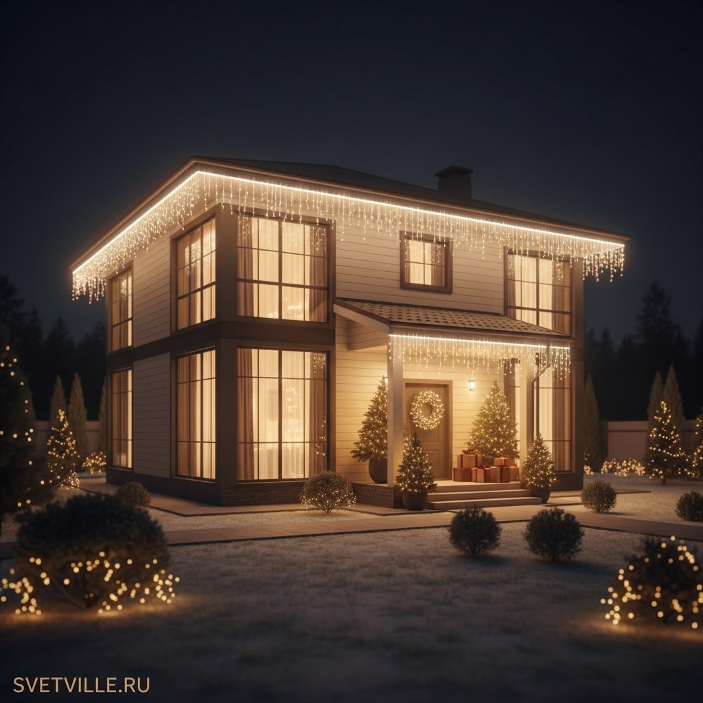 Новогоднее освещение дома в Москве, СПБ и области