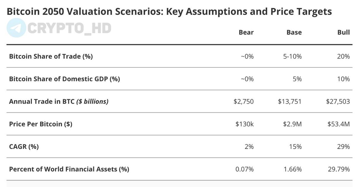 Π°ΠΊΡΠΈΠ²Π°ΠΌΠΈ Π²ΡΠΊΠ°ΡΠΈΠ» ΡΠ°ΠΌΡΠΉ ΡΠΌΠ΅Π»ΡΠΉ ΠΏΡΠΎΠ³Π½ΠΎΠ· ΠΏΠΎ BTC. βͺΠΡΡΠΈΠΉ ΡΡΠ΅Π½Π°ΡΠΈΠΉ: ΠΡΠ»ΠΈ ΠΠΈΡΠΊΠΎΠΈΠ½ ΡΡΠ°Π½Π΅Ρ ΡΠ°ΡΡΠ΅ΡΠ½ΡΠΌ Π°ΠΊΡΠΈΠ²ΠΎΠΌ Π² ΠΌΠΈΡΠΎΠ²ΠΎΠΉ ΡΠΎΡΠ³ΠΎΠ²Π»Π΅: β’ 20% ΠΌΠ΅ΠΆΠ΄ΡΠ½Π°ΡΠΎΠ΄Π½ΠΎΠΉ ΡΠΎΡΠ³ΠΎΠ²Π»ΠΈ. β’ 10% Π²Π½ΡΡΡΠ΅Π½Π½Π΅Π³ΠΎ ΠΠΠ. β Π¦Π΅Π½Π° ΠΌΠΎΠΆΠ΅Ρ Π²ΡΡΠ°ΡΡΠΈ Π΄ΠΎ $53,4m Π·Π° BTC. βͺΠΠ°Π·ΠΎΠ²ΡΠΉ ΡΡΠ΅Π½Π°ΡΠΈΠΉ: β’ Π ΠΎΡΡ ~15% Π² Π³ΠΎΠ΄. β’ $2,9m Π·Π° BTC ΠΊ 2050 Π³ΠΎΠ΄Ρ. βͺΠΠ΅Π΄Π²Π΅ΠΆΠΈΠΉ ΡΡΠ΅Π½Π°ΡΠΈΠΉ: β’ ΠΡΠ΅Π³ΠΎ 2% ΡΠΎΡΡΠ° Π² Π³ΠΎΠ΄. β’ $130,000, ΠΏΠΎΡΡΠΈ ΡΡΠΎΠ²Π΅Π½Ρ ΡΠ΅ΠΊΡΡΠ΅Π³ΠΎ ATH. βͺΠ VanEck ΠΎΡΠ΄Π΅Π»ΡΠ½ΠΎ ΠΎΡΠΌΠ΅ΡΠ°ΡΡ: β’ ΠΠΈΡΠΊΠΎΠΈΠ½ ΠΌΠΎΠΆΠ΅Ρ Π΄ΠΎΠ³Π½Π°ΡΡ ΠΈΠ»ΠΈ ΠΏΡΠ΅Π²Π·ΠΎΠΉΡΠΈ ΠΠΎΠ»ΠΎΡΠΎ Π² ΠΊΠ°ΡΠ΅ΡΡΠ²Π΅ ΡΠ΅Π·Π΅ΡΠ²Π½ΠΎΠ³ΠΎ Π°ΠΊΡΠΈΠ²Π°. β’ Π¦Π΅Π½ΡΡΠΎΠ±Π°Π½ΠΊΠΈ ΠΏΠΎΡΠ΅Π½ΡΠΈΠ°Π»ΡΠ½ΠΎ Π±ΡΠ΄ΡΡ Π΄Π΅ΡΠΆΠ°ΡΡ Π΄ΠΎ 2,5% ΡΠ΅Π·Π΅ΡΠ²ΠΎΠ² Π² BTC. Π Π°Π½Π΅Π΅: - ΠΏΡΠΎΠ³Π½ΠΎΠ·Ρ ΠΏΠΎ BTC Π½Π° 2026 Π³ΠΎΠ΄ - ΠΏΡΠΎΠ³Π½ΠΎΠ· Π‘Π±Π΅ΡΠ° Crypto Headlines