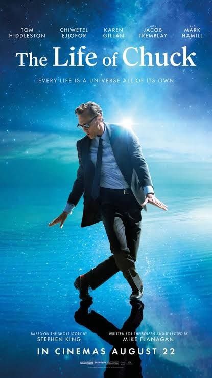 Странные события происходят в городке: случаются провалы в земле, отключается электричество, повсюду появляются билборды с подписью "спасибо, Чак". Кто это такой и чем он знаменит, а, тем более, за что стоит быть ему благодарными, не известно. Чем быстрее мир катится в бездну, тем больше билбордов появляется. Загадочная история, которая вскоре становится ясной. Фильм по роману Стивена Кинга. Мне понравился из-за атмосферы: загадочно, гипнотически, про сложный этап жизни. Лёше не зашло, слишком гипнотически для него 😂