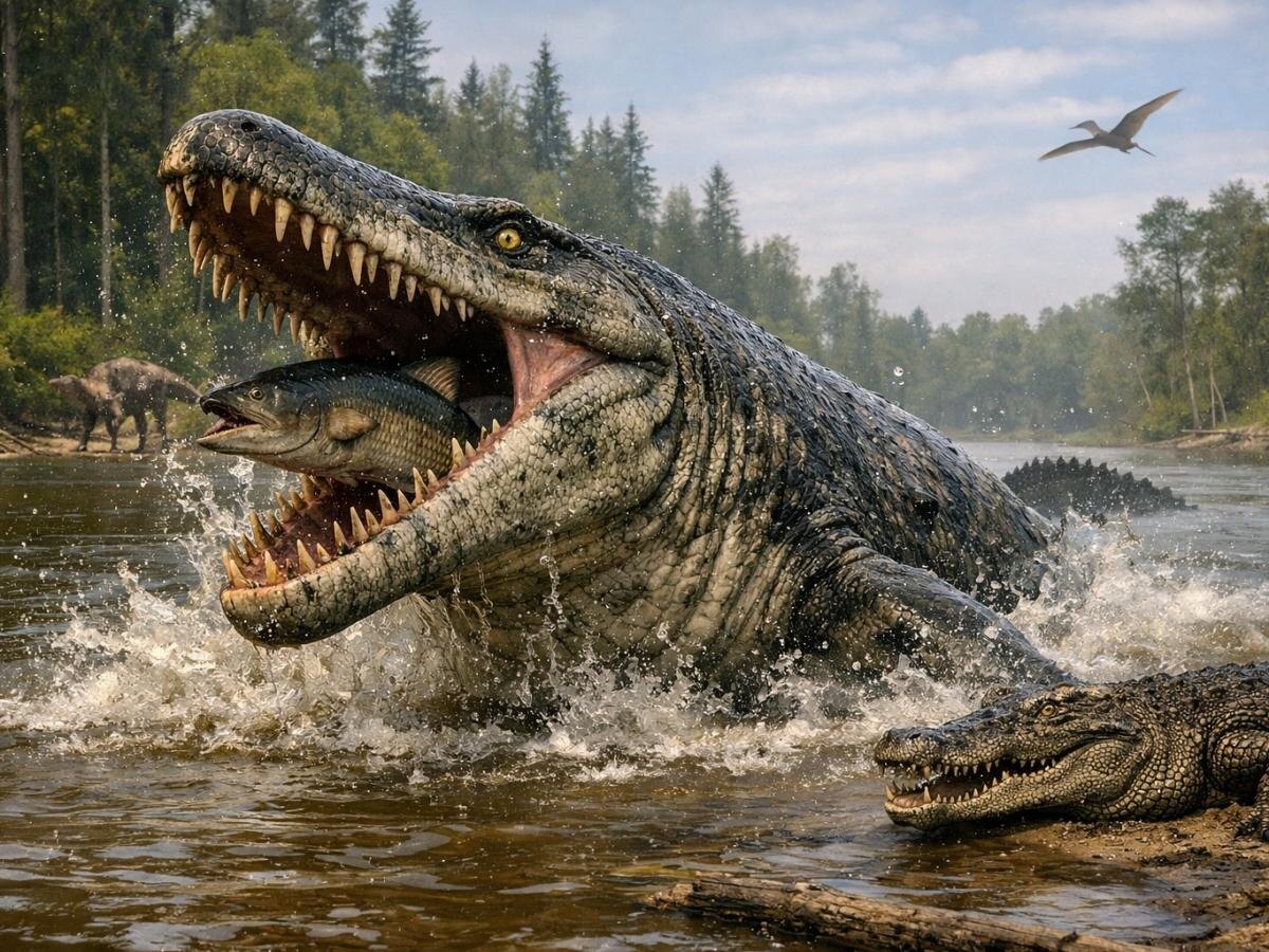 Гигантские морские хищники, которые в древности вне зависимости от размера и силы наводили ужас на океанские глубины, могли вести свою охоту не только в морях, но и в пресной воде рек. В этом исследовательские данные дают новое свидетельство: окаменевший зуб мозазавра, найденный в Северной Дакоте. Этот зуб возрастом 66 миллионов лет стал настоящим прорывом в изучении жизни этих водных рептилий. Ранее считалось, что мозазавры, гигантские ящероподобные существа, являлись исключительно морскими хищниками, охотящимися только в океанах. Однако новый анализ зуба, найденного в формации Хелл-Крик, доказывает, что эти животные могли обитать и в пресноводных средах. Учёные из Уппсальского университета в Швеции подчеркивают, что обнаружение таких следов изменяет представление о возможностях адаптации этих древних рептилий. Зуб был найден в районе Хелл-Крик и, как показали исследования, на нём присутствуют химические следы, указывающие на воздействие речной воды. Это подтверждает гипотезу о том, ч