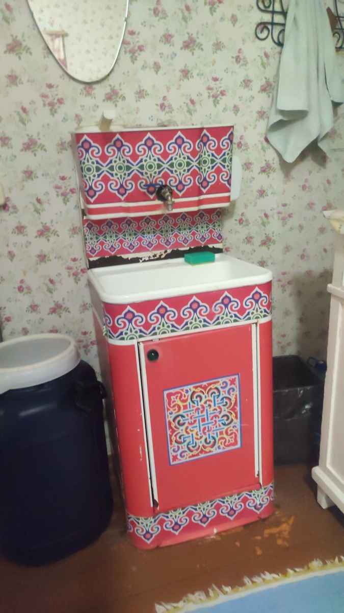 Амбарный замок открыт и мы зашли, в доме тепло, отапливается обогревателями. Деревенский уклад, кухонка, печка (не рабочая) и большая комната, где два дивана больших. Вся мебель в стиле 70-х, как у бабушки. Но мы решили показать детям, как это было и ощутить на себе всё прелести такого быта. Туалет на улице. Баня не работает.