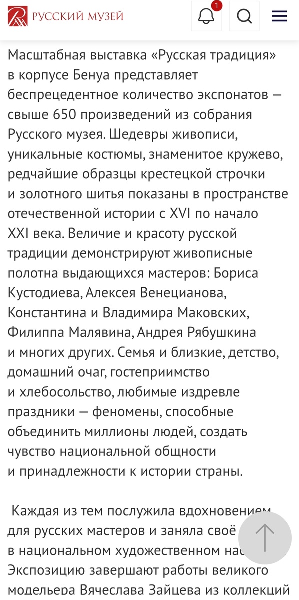Выставка "Русская традиция" проходит в Русском музее, а именно в корпусе Бенуа, вход с канала Грибоедова.