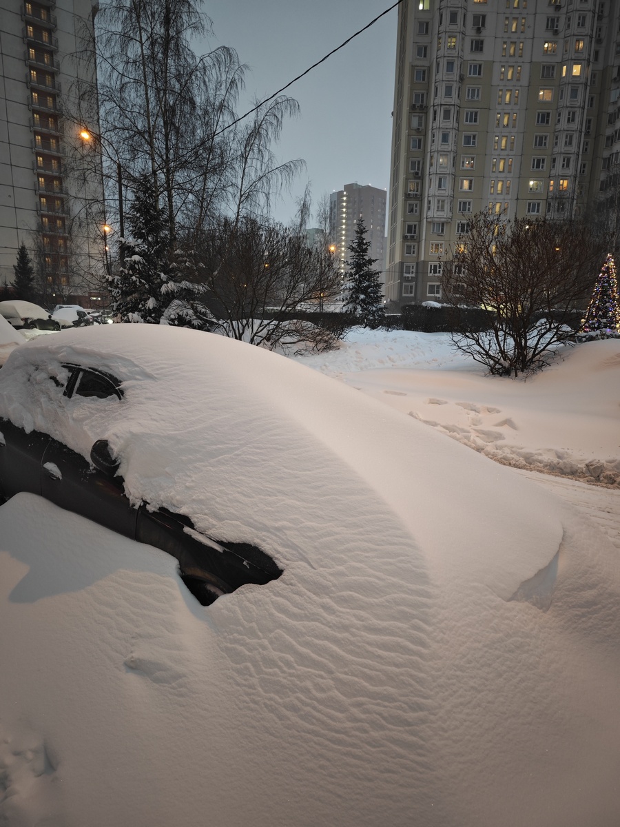Ещё вчера вечером стало ясно, что нас ждет снегопокалипсис. Часов в девять вечера начало сыпать и снег шел всю ночь. Утро встретило нас засыпанными по окна автомобилями, матерками дворников, проигрывавшими эту эпичную битву, поскольку пока они доходили до одного конца двора, можно было начинать чистить сначала. Заодно сняла видео потасовки среди дороги. Кто кого обидел не знаю, так как предысторию не успела увидеть, выглянула на истеричное бибиканье. Интересно же! Увидела только как легковушка обогнала эвакуатор, а дальше они устроили побоище посреди дороги. Ближе к вечеру выскочила в магазин, доставки сегодня пошли по одному месту, пришлось самой. Поселфилась Пошла навестить машинку Мне относительно повезло, поставила её за трансформаторной будкой и её не так сильно засыпало. У соседей заметено прилично. Завтра буду откапывать. Сейчас снег почти прекратился. Видимо всю ночь будут чистить город.