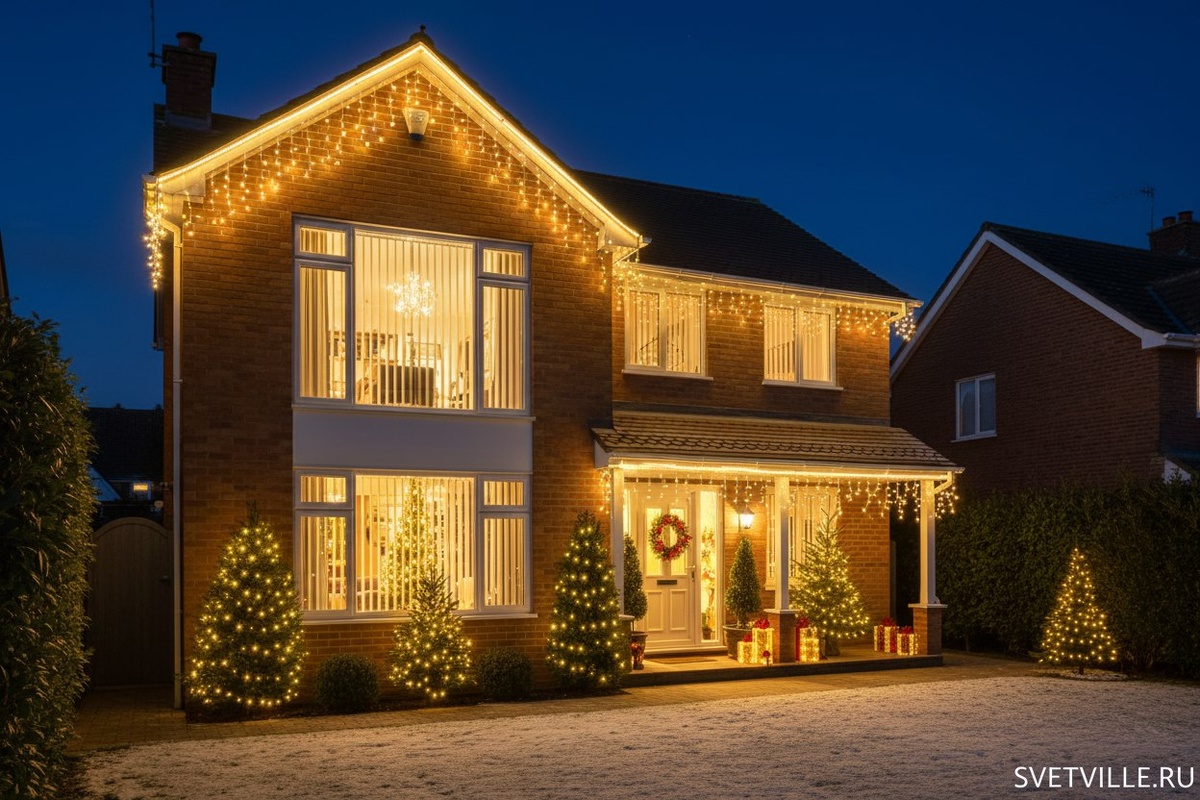 Подсветка дома на Новый год в Москве, СПБ и области