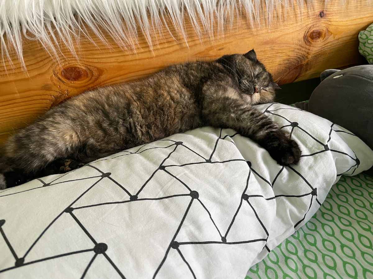 А так-то кошка может спокойно спать сама по себе без человека под боком. Для комфортного сна у нее есть теплая шуба и хвост, которым можно укутаться как шарфом.