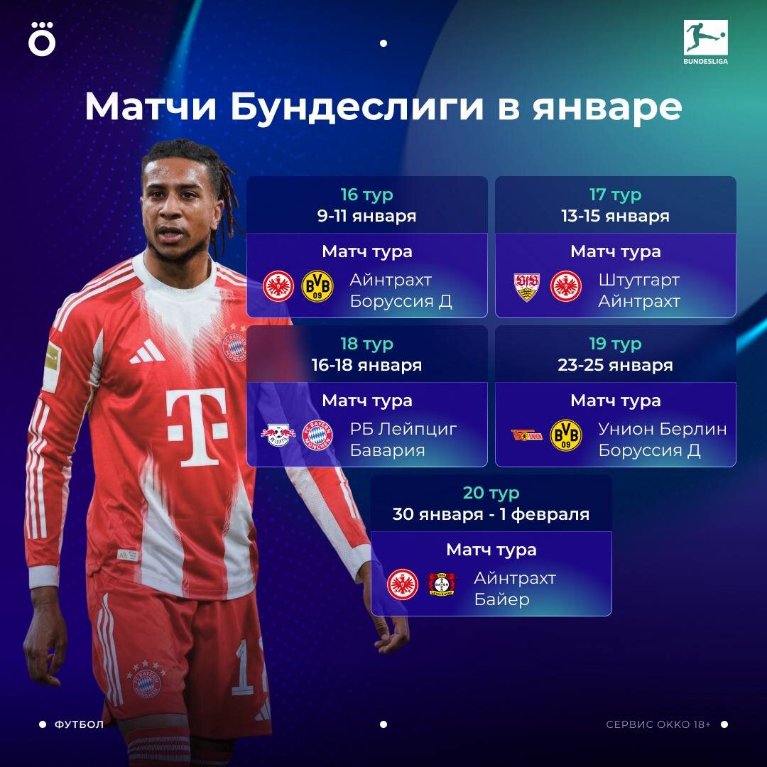 Вторую половину января проводим вместе с Бундеслигой. Увидим пять туров за три недели 🏆