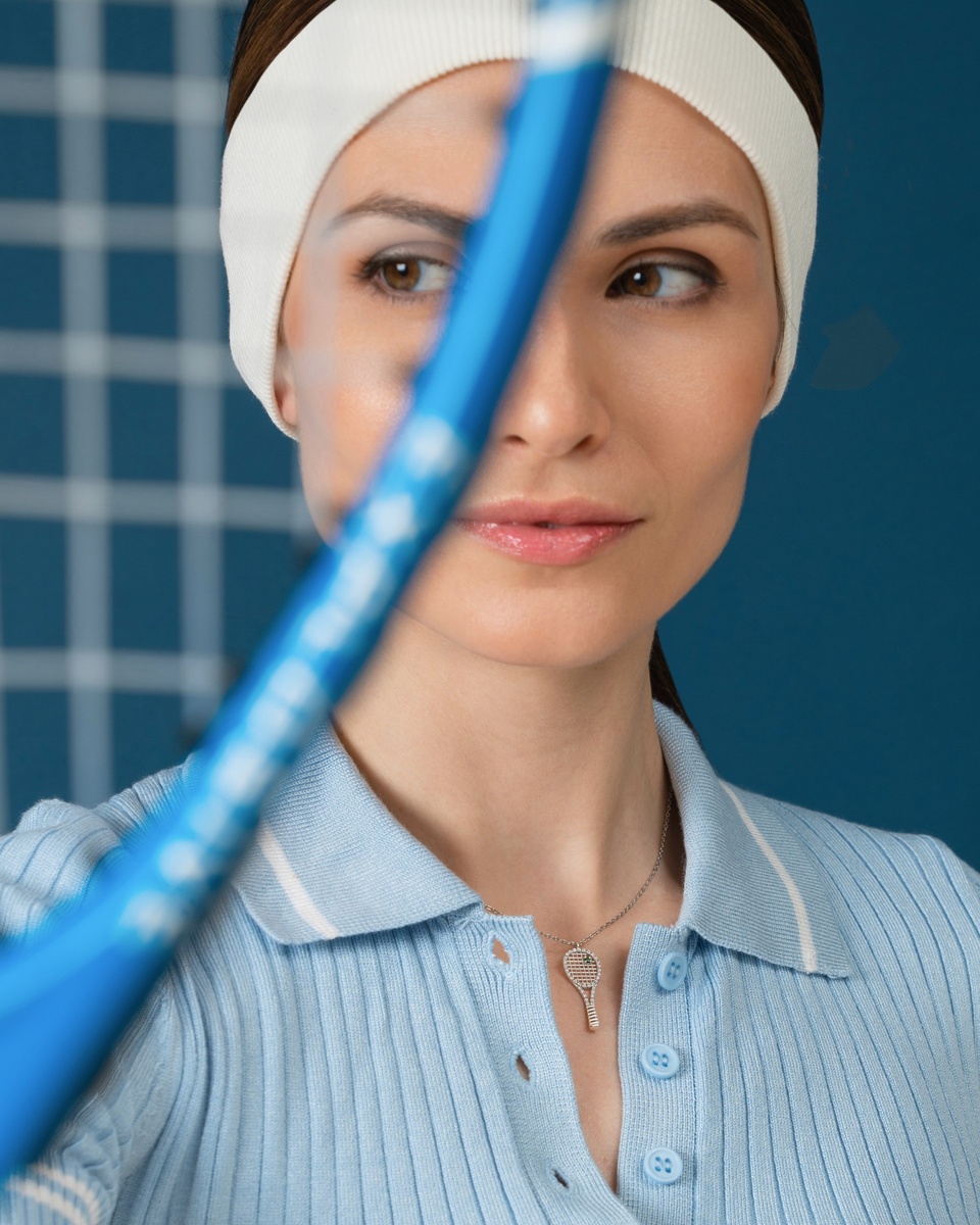 Кулон в форме теннисной ракетки с камнями из золота от SWANKY Jewelry