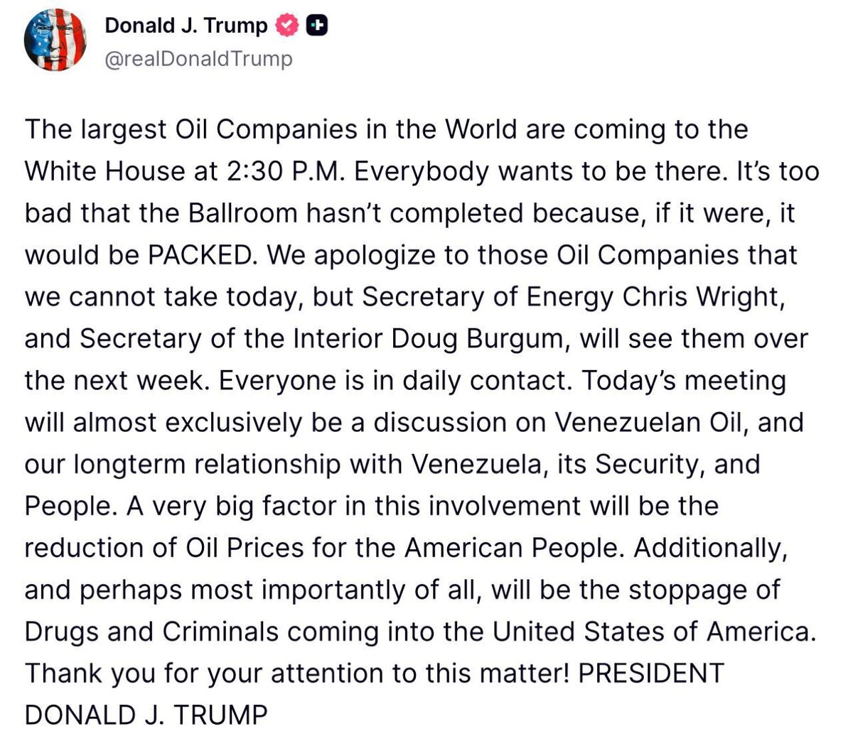 Trump meets ‘LARGEST OIL COMPANIES’ to discuss Venezuela’s oil