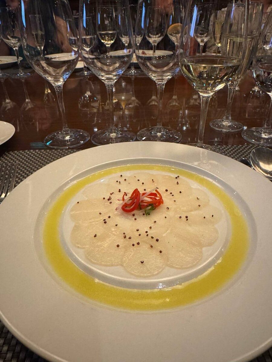 Отдельная достопримечательность на корабле — еда. 🍴 ✨ 17 ресторанов. От главного dining room с тематическими вечерами (сегодня Франция, завтра Карибы) — до четырёх мест, которых нет больше нигде во флоте. Корабль проектировали под азиатский рынок, и это чувствуется в деталях и меню. ✨ Chops Grille. Фирменный стейкхаус на палубе 5 — тот самый, куда мы «разок заглянули», а потом возвращались снова и снова. Казалось бы, удивить мясом сложно, но у них получилось: сухая выдержка, качество стейков , карпаччо с трюфельной заправкой и многое другое . А key lime meringue pie — это не десерт, это событие. ✨ Izumi Teppanyaki. Тут мы пришли просто поесть, а получили ещё и маленькое представление: повар готовит на раскалённой поверхности прямо у вашего стола. Самый популярный сет — Samurai (говяжья вырезка + тигровые креветки). Очень «вау», причём без лишнего пафоса. ✨ Четыре уникальных ресторана (только на этом корабле): — Sichuan Red — аутентичная сычуаньская кухня и блюда, которые звучат с