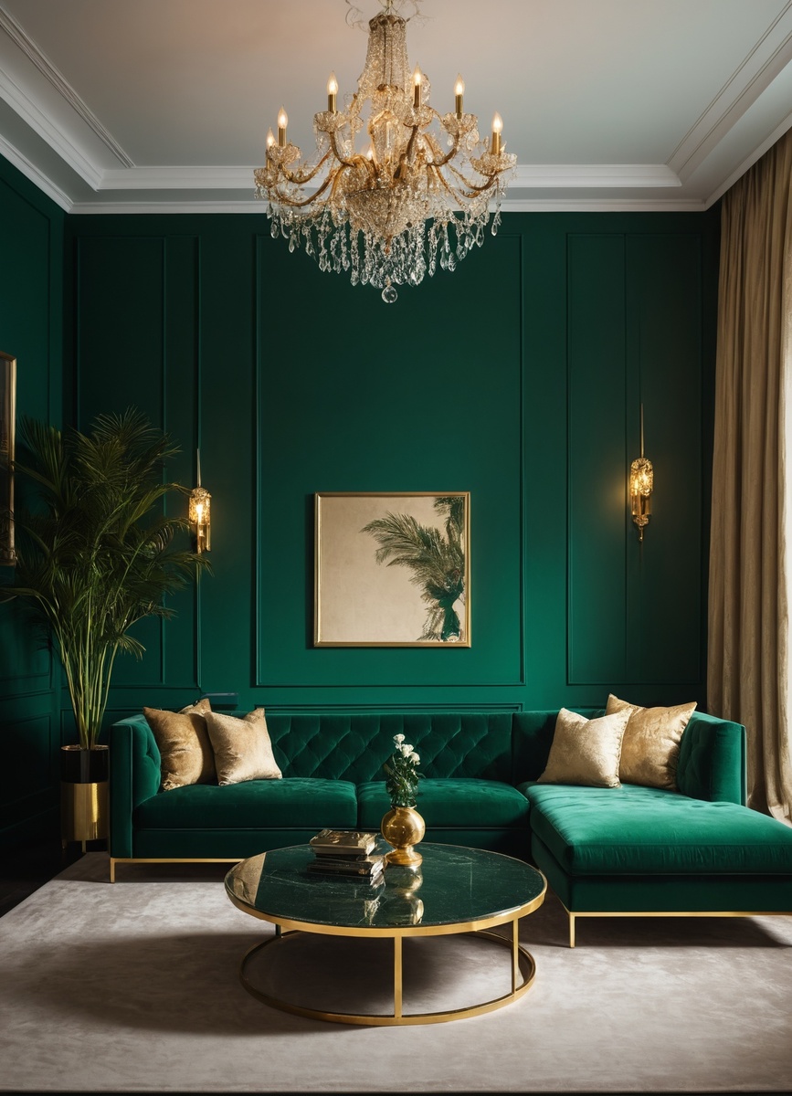 Изумрудный цвет прекрасно вписывается в классические интерьеры, где он используется для оформления стен, мебели и текстиля. В таких пространствах он создает атмосферу уюта и роскоши. Комбинация с золотыми элементами и антикварной мебелью подчеркивает статус и элегантность. В современном дизайне изумрудный цвет может быть акцентом на одной стене или в виде ярких аксессуаров, таких как подушки и картины, что добавляет динамики и свежести.