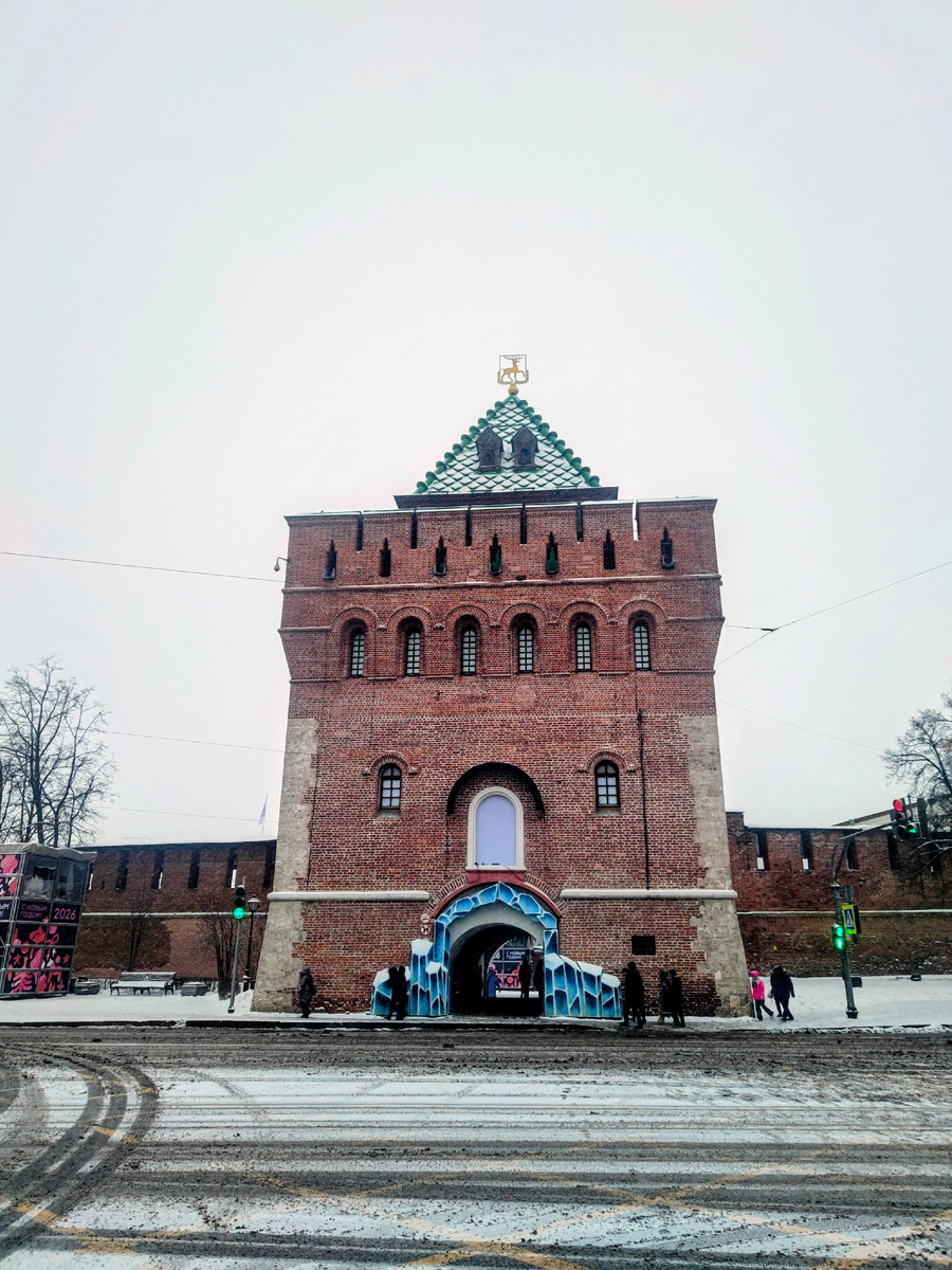 Вышли мы на остановке площадь Минина, видим Дмитриевскую башню, движемся по намеченному пути.