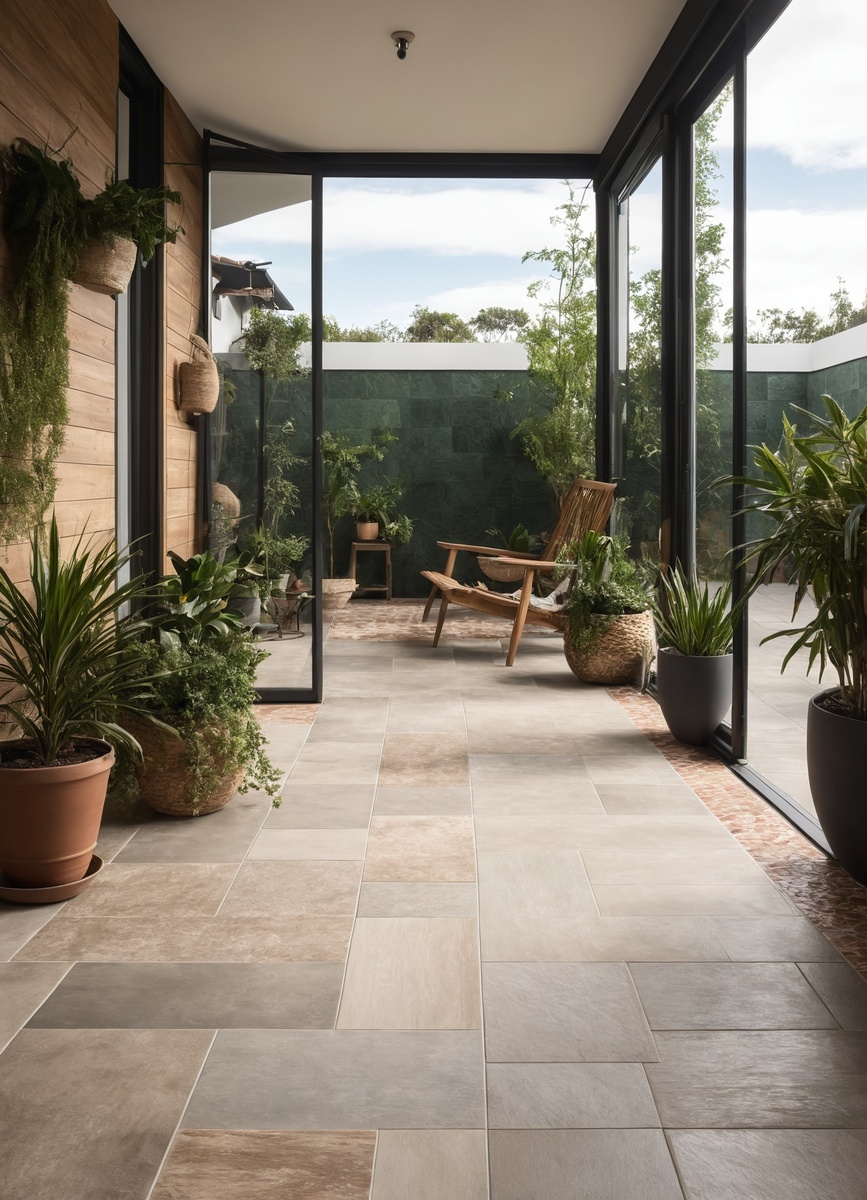 Для лоджий, где температура и влажность могут значительно колебаться, важно выбирать напольные покрытия с высокой устойчивостью к таким изменениям. Керамическая плитка отлично справляется с влагой и не подвержена деформации, хотя холодная поверхность может быть некомфортной в зимний период. Виниловая плитка предлагает разнообразие дизайнов и влагостойкость, но при сильном понижении температуры может терять форму, что негативно сказывается на долговечности покрытия.